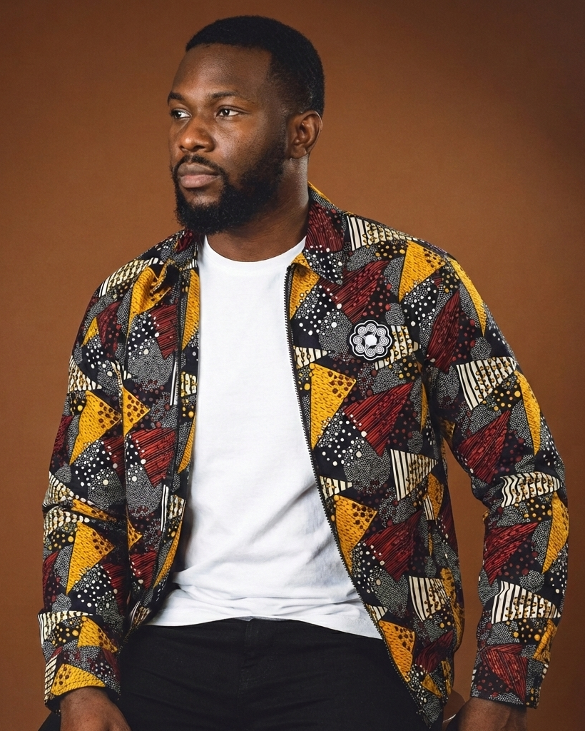 This varsity-inspired jacket blends modern streetwear with African craftsmanship for a refined yet functional design. Crafted with a textured body and Ankara fabric detailing, it offers both durability and cultural edge. Finished with a white embroidered logo, a contemporary collar, and practical side pockets, it’s designed for everyday wear with standout style.