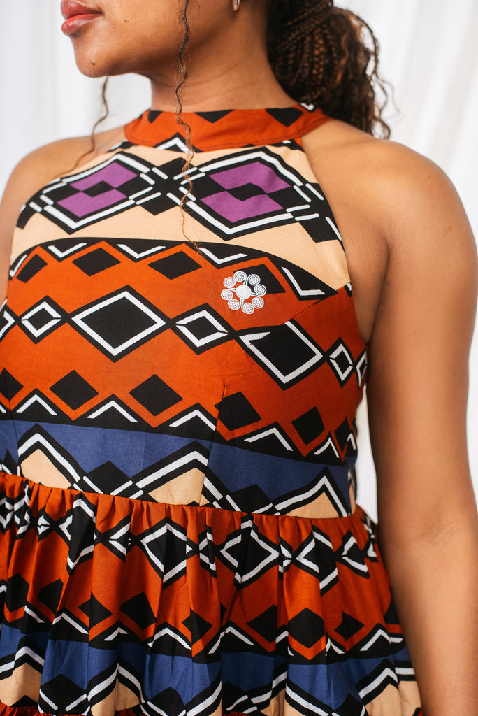Crafted in the vibrant Ubwami Ankara print from the Kunye Collection, a celebration of unity and togetherness across the African continent, this piece is a seamless blend of culture, craftsmanship, and contemporary design.