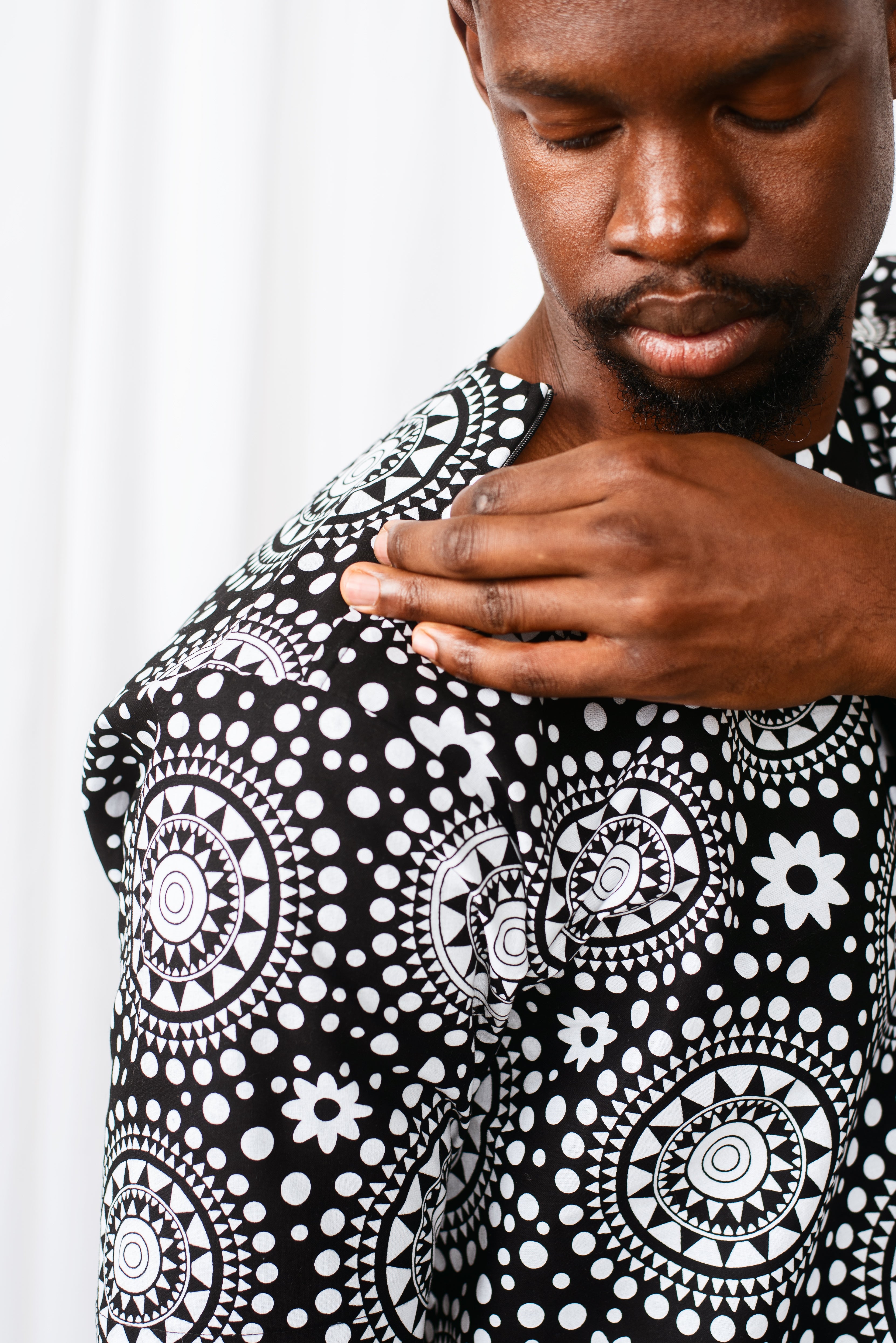 Crafted in the Indilinga print, it embodies the circle of wholeness and interconnectedness, anchoring its place in the Kunye Collection, a range that celebrates unity and honours the spirit of togetherness across the African continent.