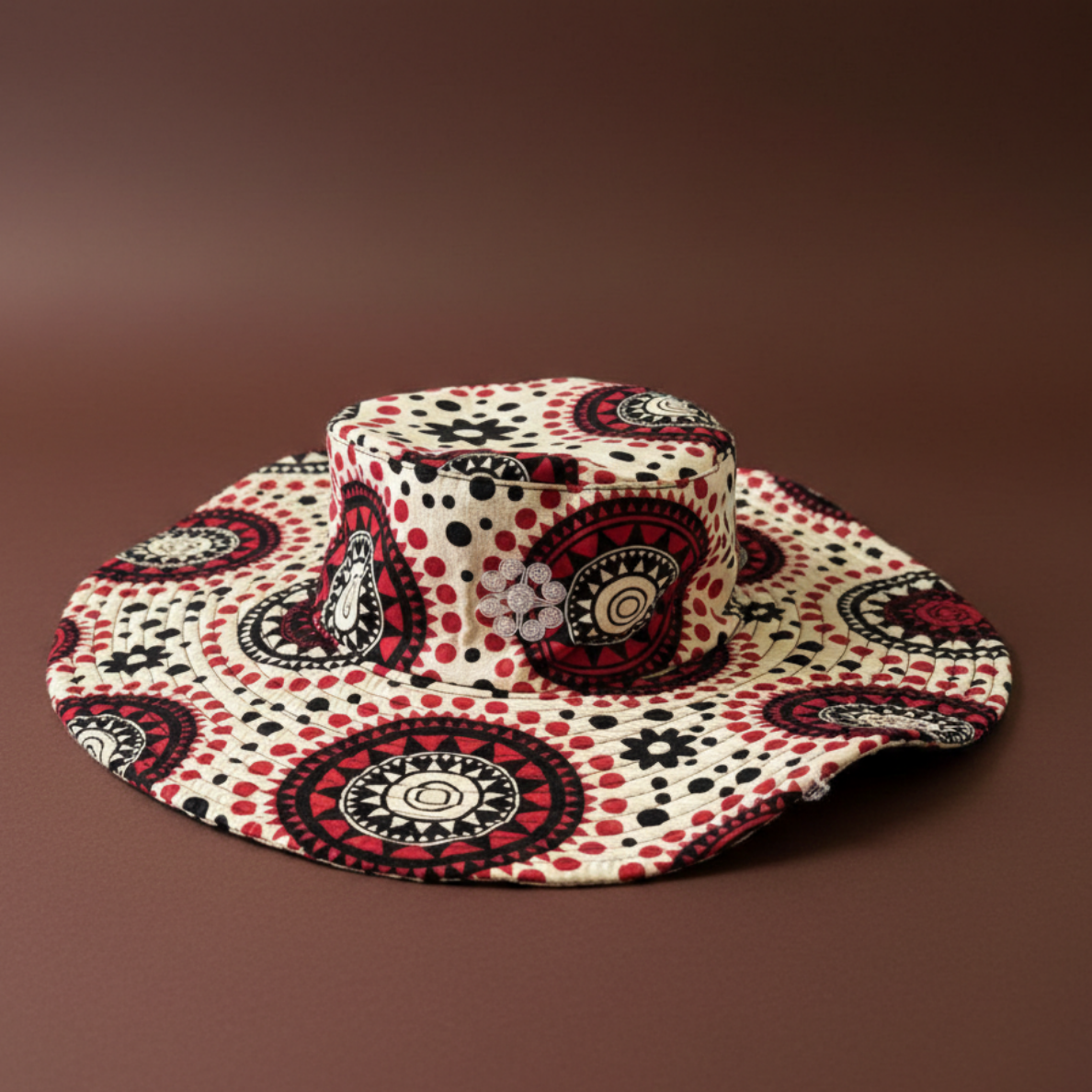 Shield yourself from the sun in style with the Indilinga Wide-Brim Sunhat, where modern elegance meets African heritage. Crafted in a striking cream, red and black palette, this statement piece features the timeless Indilinga print.