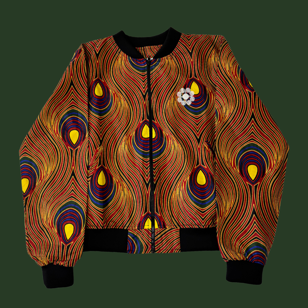 Crafted from 100% Wax Cotton—famously known as Ankara or African print—the Bantu Summer Jacket is a bold blend of heritage and contemporary style. Designed for warm-weather wear, it features lightweight taffeta lining for a cool, breathable feel, and premium lycra-cotton ribbing on the cuffs and neckline for lasting comfort.