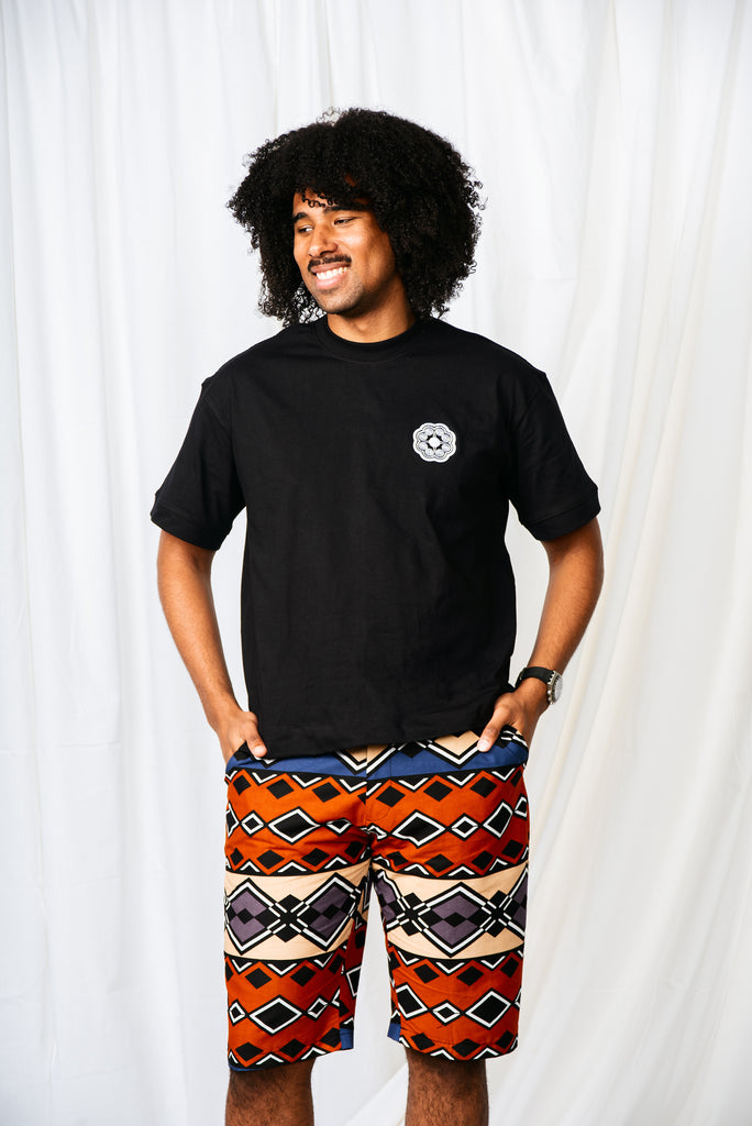 Knee-length and crafted in vibrant Ubwami Ankara, these shorts are perfect for summer. Featuring two side pockets, a back pocket, and a subtle white logo, they combine practicality with bold, colorful style.