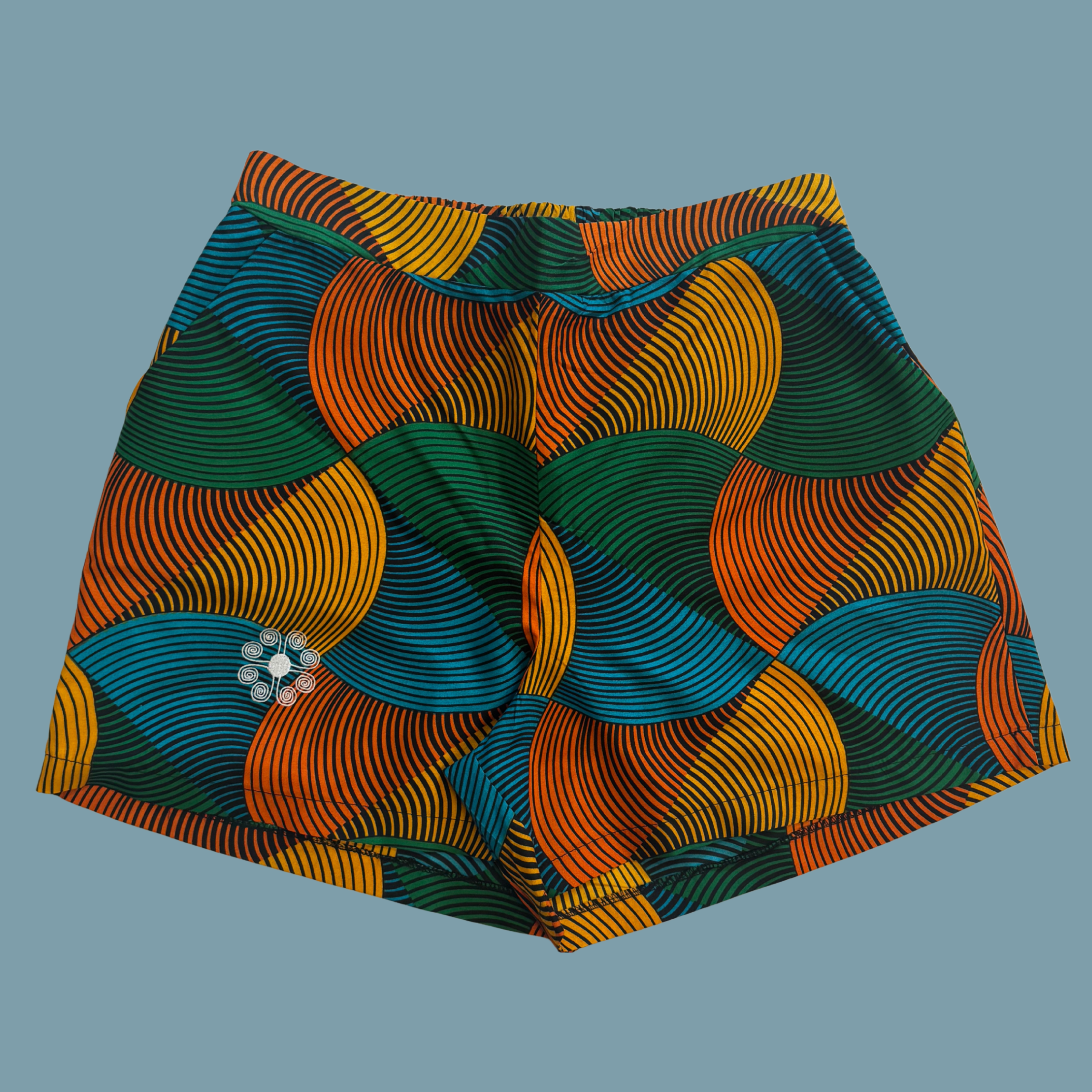 Bring a pop of colour to your wardrobe with these vibrant Ankara print shorts in fresh spring hues. Finished with a subtle white embroidered logo, they combine cultural flair with everyday comfort. Perfect for pairing with crop tops or casual tees for effortless, stylish looks.